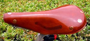 サドルは、萩原さんが最高と考えている堺はフジタのサドルです。オリジナルなので市販されていません。"FUJITA PROFESSIONAL"と焼印が押されています。