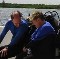 待つこと何分なのか・・・ガイドと流された彼が船の横から潜ってきました。どうも、流されてから違う経路で潜ってきたようで、彼らは彼らで私たちを探していたようです。セオリーどおりに、予定していた場所に潜っておいでよ・・・(^^;