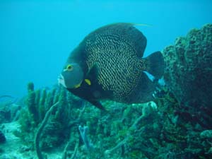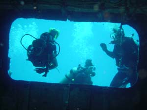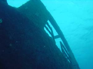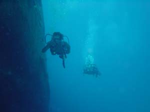 で、ガイドが追っかけていき、こちらは水深25mでボーっと待っていることになりました。そうこうしていると、お母さん親子が別なグループに付いていってしまい、私とカップルの女性の片割れだけ、ぽつんと水中で待っていました。お互いに顔を見合わせて、「しようが無いねえ」というポーズを取り合いました。