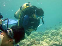 なんとなくチョイスしたウェットに浮力があり、沈めない状態で潜りましたので、ガイドやアシスタントに5mの安全停止の際にちょっと押さえてもらいました(^^;
